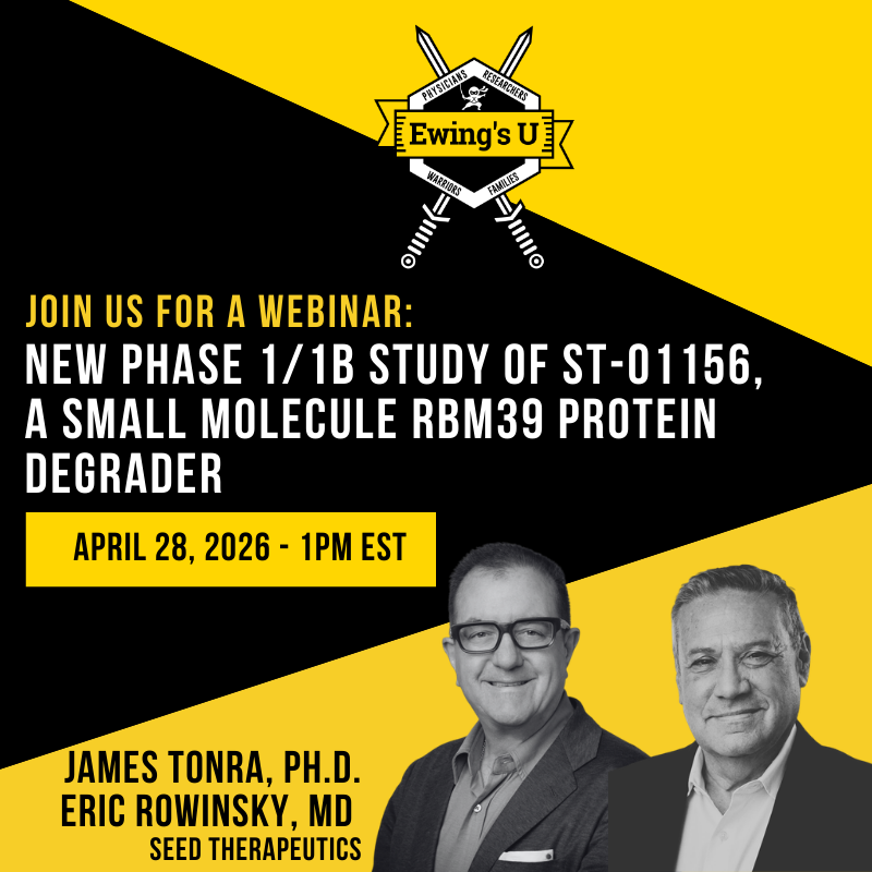 Join us as Drs. Eric Rowinsky and James Tonra of Seed Therapeutics present on recently opened clinical trial (NCT07197554) for solid tumor, with specific focus on Ewing sarcoma. ST-01165 is a orally administered, protein degrader (molecular glue), targeting RMB39 - a key regulator of RNA splicing and transcription required for tumor cell proliferation.